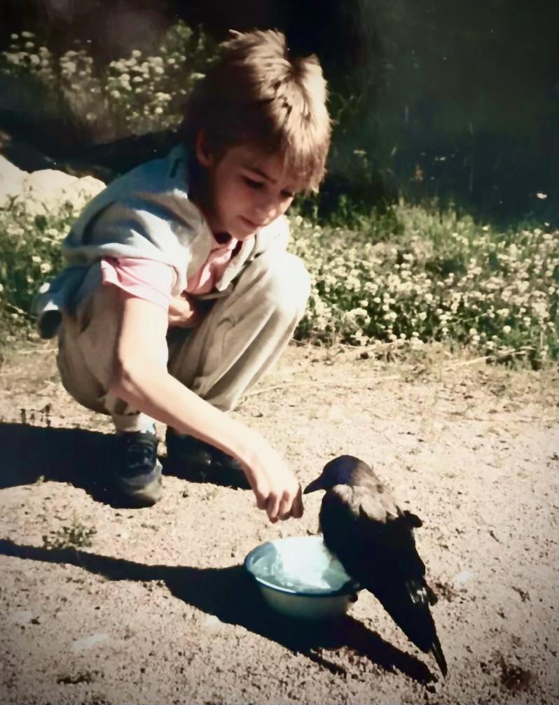 Isäni nimittäin rakasti lintuja. Hän vihelteli lintujen kanssa, opetti meidät tunnistamaan lajeja ja lintujen elintapoja, ja rakensi linnuille upean piparkakkutalomaisen lintulaudan jouluvaloineen. Talvisin hän saattoi istua pitkään keittiön ikkunan äärellä seuraamassa tiaisten, varpusten ja punatulkkujen kiireitä. Kun löysin noin kymmenvuotiaana variksenpojan männyn juurelta orpona, isä antoi minun pitää sen. Hänen kauttaan opin, että on mahdollista muodostaa yhteys myös villiin eläimeen.